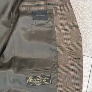 John W Nordstrom Mens 44R Blazer Sport Coat Brown LORO PIANA Wool Plaid Jacket