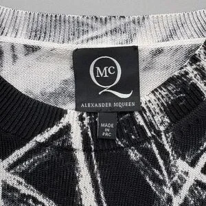 ALEXANDER MCQUEEN MCQ Sweater Men Small Abstract Black White Silk Cotton Preppy