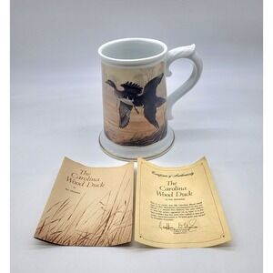 This 1983 limited edition Franklin porcelain stein titled "The Carolina Wood Duck" by artist Ken Michaelsen is a decorative and collectible piece in good pre-owned vintage condition with no noted chips or cracks. It is a large mug/stein part of the Ducks Of North America collection. It also comes with a certificate of authenticity. Please view all photos carefully to verify the overall condition and measurements.