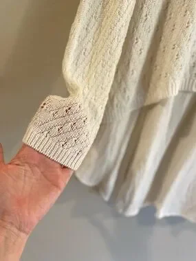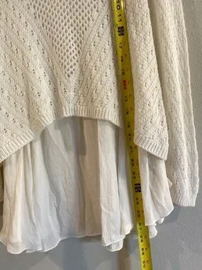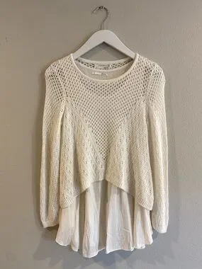 Anthropologie Ivory Crochet Open Knit Layered Sweater Set Size XS Boho Festival