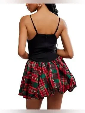 Free People Tinsel Kiss Mini Women's Dress in Black & Red Green Tartan size XS