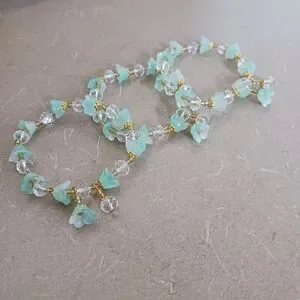 Enhance your style with this elegant bracelet set featuring delicate green floral accents and gold details. Perfect for any occasion.