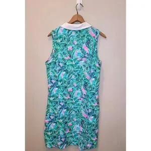 The Lilly Pulitzer Luxletic Silvia Dress in Blue Horizon Parfection Print is a stylish and versatile piece perfect for various occasions. With a sleeveless design, collared neckline, and short length, this A-line dress is made from a comfortable blend of nylon and spandex. The colorful multicolor print adds a pop of beachy vibrancy, making it ideal for summer, fall, and spring events like parties, cocktails, or casual outings. Machine washable for easy care, this Lilly Pulitzer dress also features pockets for added functionality, making it a practical yet fashionable choice for women who love a coastal or preppy style.