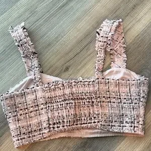 Trendy pink tweed tank top. Perfect for casual outings.