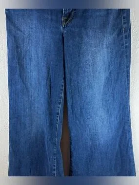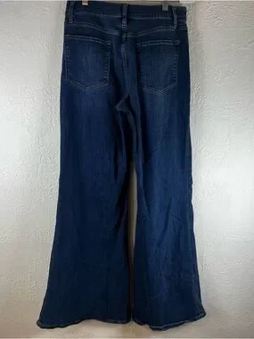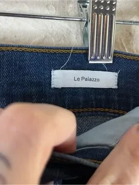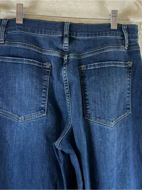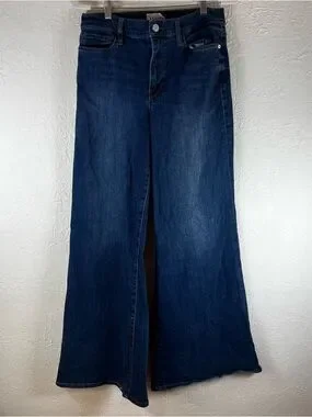 In excellent used condition no rips, tears or stains. Shift into the new season in Le Palazzos sophisticatedand flatteringsilhouette. This high-rise, wide-leg fit is crafted from soft stretch denim in a clean, true blue wash and slight distressing at the swingy bottom hems.