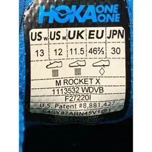 The Hoka One One Rocket X Running Shoes in Blue and Yellow are versatile athletic sneakers suitable for both men size 12 and women size 13. These lace-up shoes feature a low-top design with a standard shoe width, making them ideal for activities such as running, cross-training, and gym workouts. The breathable mesh upper and foam insole provide comfort and support, while the rubber outsole ensures durability and traction. Perfect for all seasons, these sneakers are designed for performance and are inspired by the character of a rocketeer. Designed by Hoka One One, these shoes are a stylish and functional addition to any athletic wardrobe.