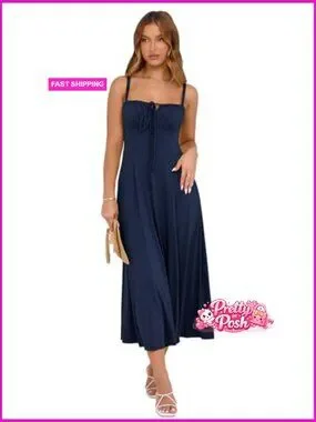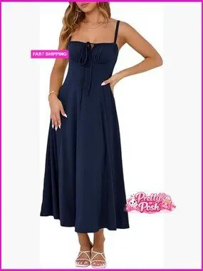 A lightweight, stretchy sundress featuring a lace-up front and adjustable straps. Designed with a flattering corset waist and backless silhouette, perfect for dressing up or down.