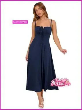 Corset Midi Dress with Adjustable Spaghetti Straps and Lace-Up Front