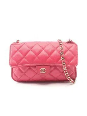 This is an authentic Chanel Shoulder Bag in magenta. The bag features the brand's iconic quilted leather body with a chain strap, gold-tone hardware, and the signature interlocking "CC" logo.