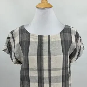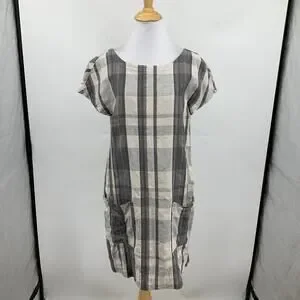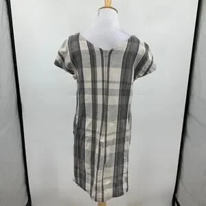 Eileen Fisher Dress Womens S Small Organic Linen Blend Plaid Lagenlook Pockets
