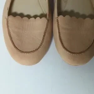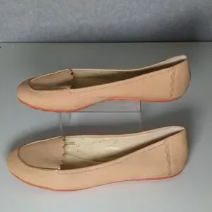 Tahari Ballet Flat Shoes Doll Shoes Gwen Beige Scalloped Leather 9M