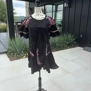 🌸 Boho Floral Embroidered Tunic Dress – XS 🌸