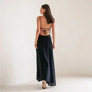 SABO Womens Harlie Maxi Dress Strappy Lace Cut Out Open Back Sleeveless Large