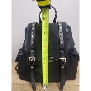 Michael Kors Leila Flap Medium Nylon Backpack Bag Gold Studs