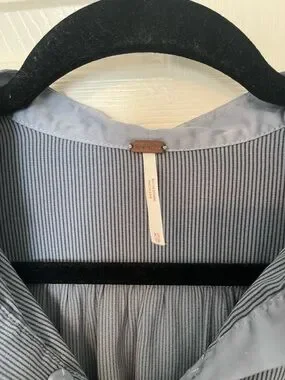 Free People XS Gray Pinstripe V-Neck Tunic Blouse Goth Minimalist