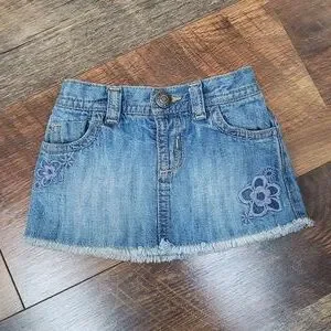 Old Navy Blue Denim Floral Embroidered Skirt, Size 3-6 Months