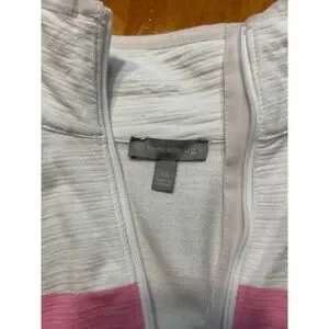 T by Talbots Womens XS White Striped Quarter Zip Pullover UPF 50+ Mock Neck Top