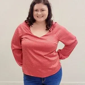 This top has a V neckline, has long sleeves, has a dot design throughout, is lightweight, and is made of a polyester fabric blend. Size XL!M.