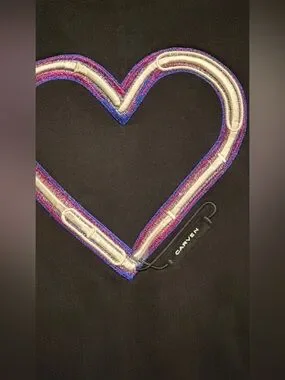 Embroidered neon heart detail on front of chest with small Carven logo printed. Ribbed collar, cuffs and hem. Back zip closure.