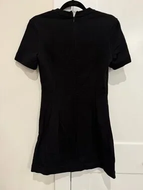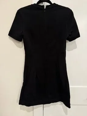 Short sleeve crewneck sweater dress in black.
