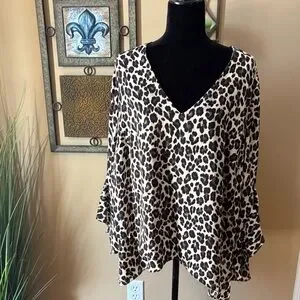 Stylish leopard print blouse with a flattering V-neck. Perfect for versatile wear. Only wore 1 time. Women's 2x