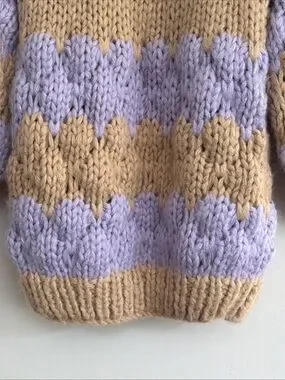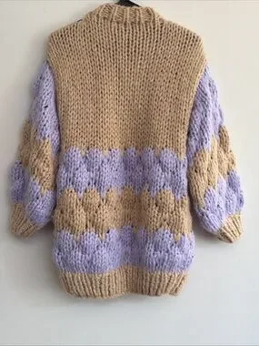 New with tags condition, no flaws. Buttery soft and cozy, the open knit style will keep you warm but not overly hot. Slightly oversized. Colors are natural tan and soft purple. Original MSRP $118.