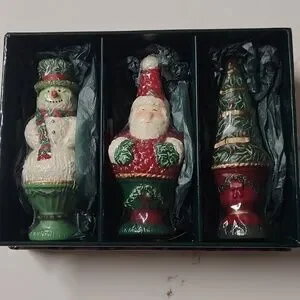 Celebrate the season with this charming set of holiday figurines. Featuring a jolly snowman, a cheerful Santa, and a festive Christmas tree, each piece is beautifully crafted in vibrant colors. Perfect for adding a touch of holiday spirit to your home decor.