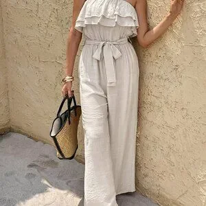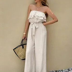 Apricot Casual Women's Ruffled Vacation Jumpsuit