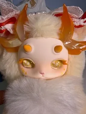 ✔️ Cream plush with orange crystal horns, fluffy tail, and detailed accessories