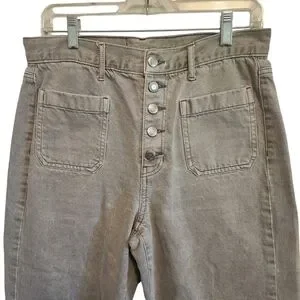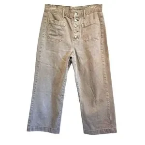 AMERICAN EAGLE HI RISE BUTTON FLY WIDE LEG PATCH POCKETS CROP JEAN'S SZ 8