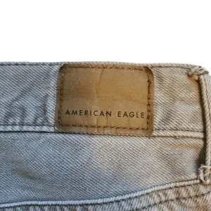American Eagle high-rise cropped jeans featuring a flattering wide-leg silhouette with a classic button fly front. Designed with functional front patch pockets for a vintage-inspired look, these jeans offer a structured yet comfortable feel that pairs perfectly with fitted tees, sweaters, or blouses. A versatile everyday denim style that works effortlessly across seasons, from casual spring days to layered fall outfits.