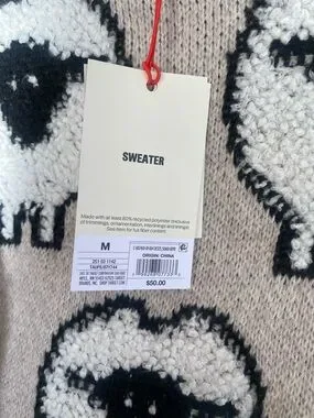 Woolrich and Target Beige Crewneck Sweater with Black and White Sheep Motif