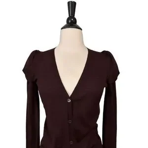 Prada Maroon Tulip Sleeves Cardigan Sweater Size 42 US4/6
