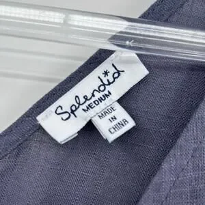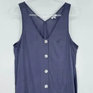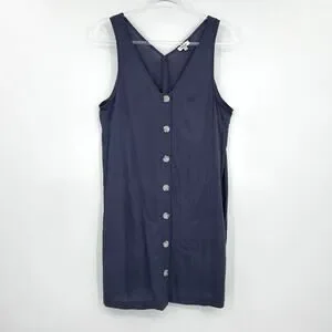 Splendid Linen Blend Button Front Shift Dress Blue Sleeveless M Lightweight