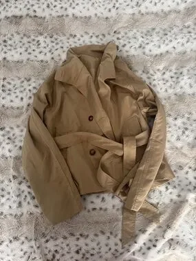 Edyisa Alden Trench Coat with Self-Tie Waist in Beige