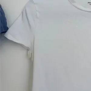 Soft white short-sleeve tee with a close fit. Crew neckline and smooth, stretchy fabric. Easy staple for casual outfits. Pairs well with jeans or layered looks.