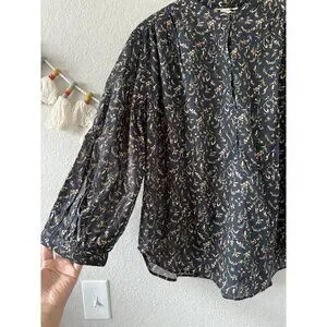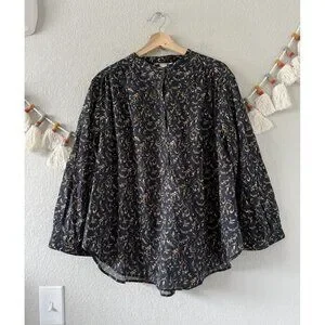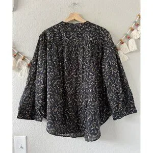 H&M 100% Cotton Floral Poplin Button Front Oversized Top Fairy Coquette Boho L