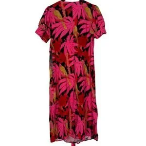 J. Crew Tropical Palm Print Faux Tie Wrap Midi Dress V Neck Short Sleeves Side Zip Up Lightweight Flowy Pink Red Black Tan