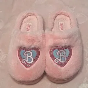 Barbie Pink Fuzzy Heart 'B' Slippers
