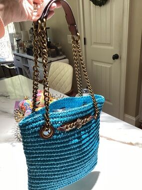 Kurt Geiger Turquoise Woven Chain-Handle Shoulder Bag NWOT
