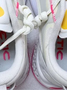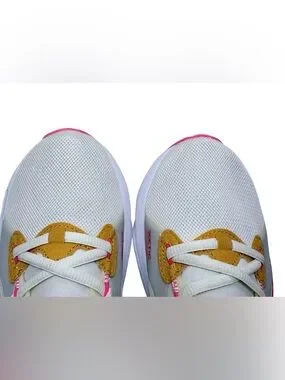 Lightweight breathable mesh upper. Cushioned midsole with unique perforated design for optimum comfort. Comfortable lace-up fit. Subtle yellow and pink accents for style.
