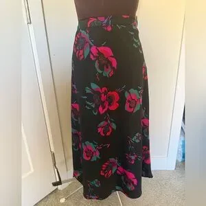 J. Crew Black Maxi Skirt with Pink & Teal Floral Print