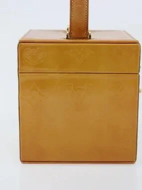 LOUIS VUITTON Monogram Vernis Bleecker Cosmetic Pouch Beige M91002 Auth 173131