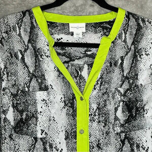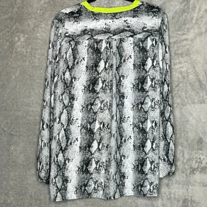 Jaclyn Smith XL Shirt Top Gray Snake Print Button Up Long Sleeve Henley V Neck