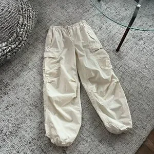 Aritzia Tna Squad Pocket Parachute Cream Elastic Waist Pants Size S