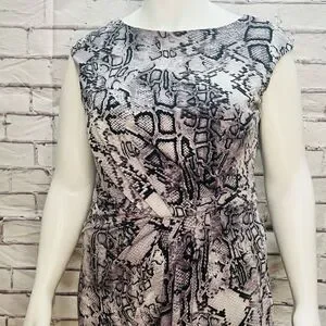 Suzi Chin for Maggy Boutique Womens Snake Print Crew Neck Belted Midi Dress 16