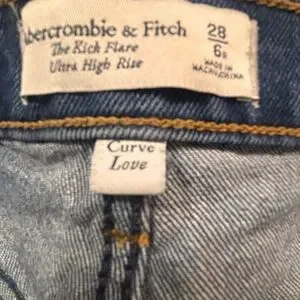 Trendy and flattering Abercrombie & Fitch “The Kick Flare” Curve Love Ultra High Rise Jeans in a soft, stretch denim.