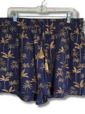 Boden Women's Size 10 Navy Golden Palm Tree Print Drawstring Shorts