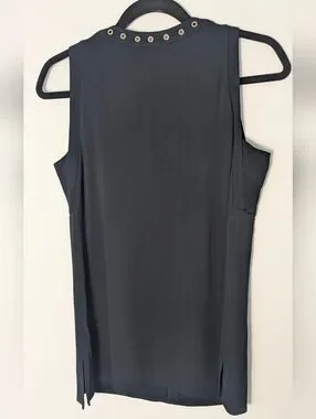 Worth Womens Gold Embellished Top Sleeveless Dark Navy Size S V-neck Office EUC