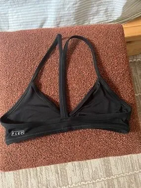 Lightweight bralette with thin adjustable straps. Smooth, stretch fabric for gentle support. Minimalist silhouette for layering or low-impact activities. Sleek black tone for versatile styling.